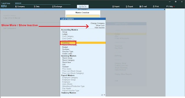 2) अब Create में जाकर Show More / Show Inactive पर क्लिक करें |